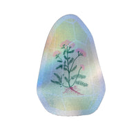 3x2 " vinyl sticker of a yarrow plant inside of a faceted crystal on matte holographic sticker paper, to offer a mild rainbow effect