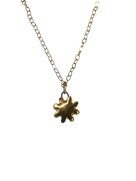 Tiny ceramic pendant in a star shape. Shiny metallic gold luster over white porcelain